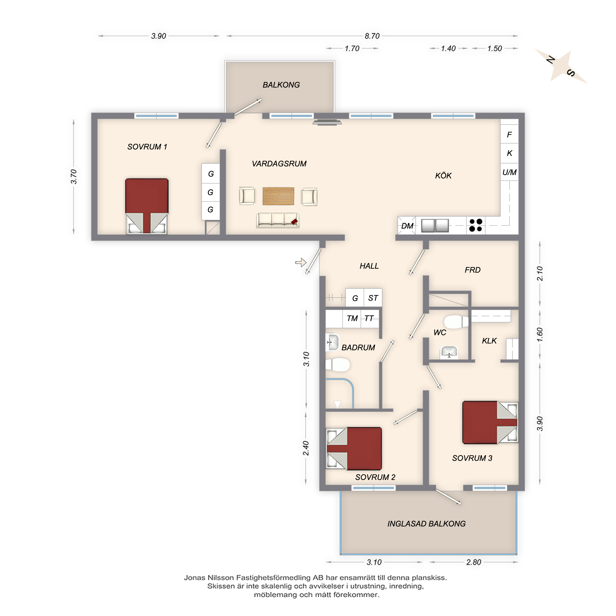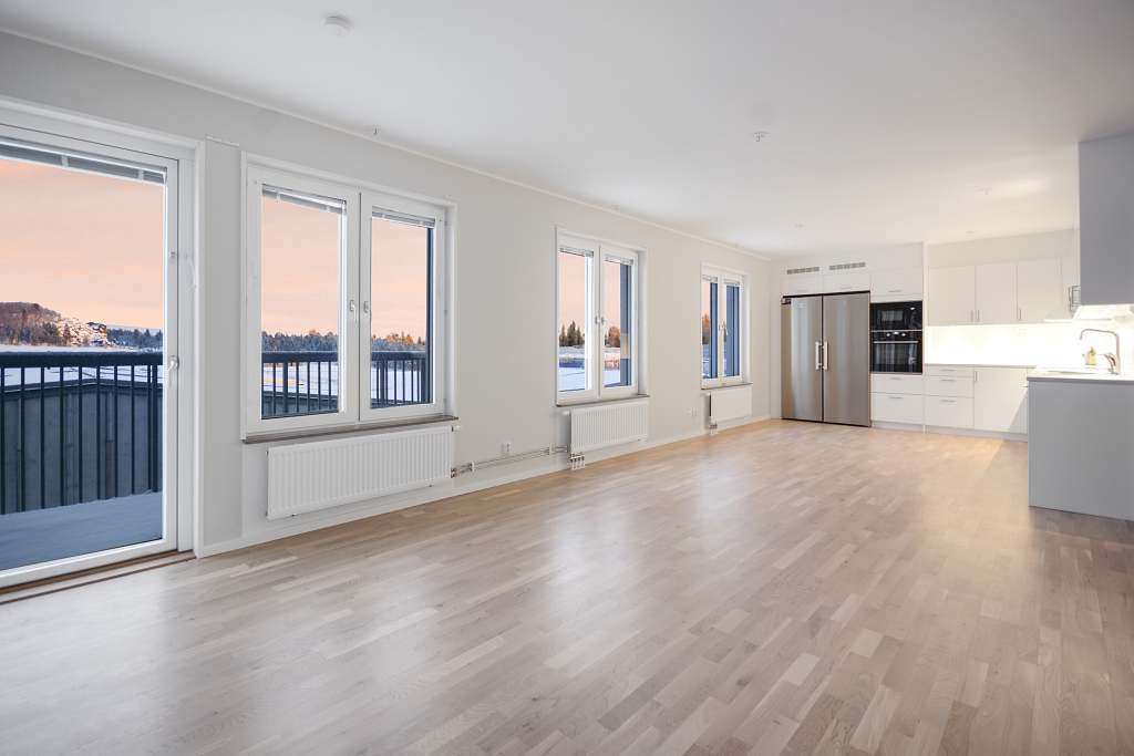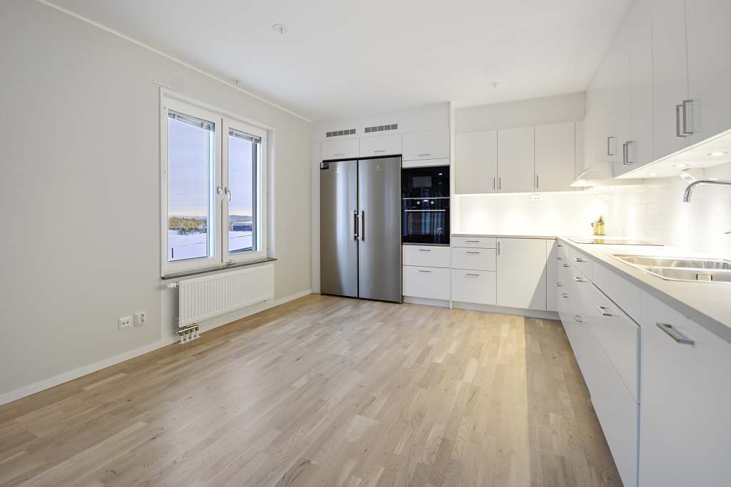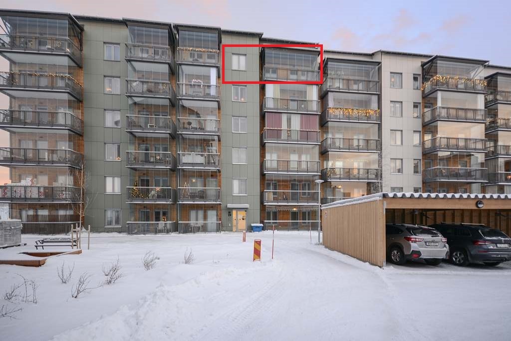 FÖRANMÄLAN KRÄVS FÖR VISNING TISDAG 16 DECEMBER KL. 12:00-12:20 SAMT KL. 17:00-17:20. Välkommen till Midnattssolsvägen 19 – en modern och smakfullt utformad fyrarummare om 98 kvm, belägen högst upp i huset med lugnt och ljust läge på våning fem. Denna nyproducerade bostadsrätt erbjuder fina materialval, generösa ytor och en utsikt som verkligen gör hemmet speciellt. Hiss finns, vilket gör vardagen både bekväm och funktionell. Läget kan inte bli mer centralt. Här bor ni mitt i Kirunas nya stadskärna, omgivna av butiker, restauranger och vardagsservice. Utanför håller en stadspark att ta form – en naturlig mötesplats som kommer att ge området ännu mer liv och trivsel. Bostaden välkomnar med en rymlig hall, bra förvaring i form av inbyggd garderob och städskåp. Till vänster öppnar sig ett stilrent och fullt utrustat kök med vit inredning, fullstor kyl och frys, induktionshäll, inbyggda vitvaror samt integrerad diskmaskin. Här möts kök och vardagsrum i en social och öppen planlösning, perfekt för middagar, umgänge och vardagsliv. Från vardagsrummet når du bostadens ena balkong, med fin utsikt och gott om ljus. De tre sovrummen är i bra storlek och erbjuder praktiska förvaringslösningar. Ett av rummen har tre garderober, medan ett annat har egen klädkammare samt utgång till den stora inglasade balkongen – ett extra rum större delen av året, perfekt för morgonkaffe, middagar eller bara stilla stunder med utsikt över innergården och den nya parken. Badrummet är fräscht och modernt med dusch, tvättmaskin och torktumlare, och utöver detta finns även ett separat WC samt ett tillhörande förråd. I föreningen finns dessutom tillgång till en trivsam gemensamhetslokal med bastu. Vi ses på visningarna!Läs mer