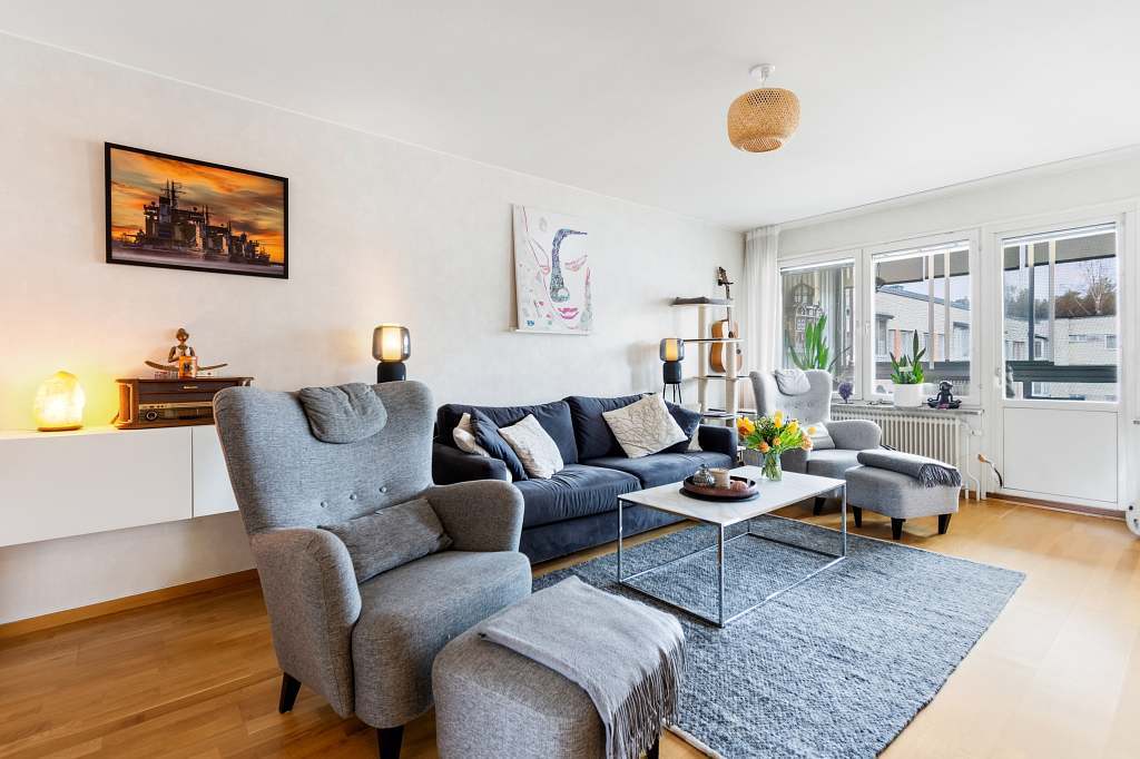 Välkommen till denna trivsamma och välplanerade 3:a på populära Mjölkudden! Nu förmedlar vi 3 rum och kök i högt och insynskyddat läge. När du kliver in i lägenheten möts du av en öppen hall med gott om förvaringsmöjligheter i form av klädhängare samt en garderob. Bostaden erbjuder två rymliga sovrum med gott om plats för både säng och förvaring, perfekta som sovrum, barnrum eller hemmakontor. Det stilrena köket från epoq är smakfullt utformat med bra arbetsytor, diskmaskin, fullstor kyl och frys och en naturlig matplats där du enkelt samlar familj och vänner. Här finns allt du behöver för både vardagsmatlagning och trevliga middagar. Vardagsrummet är ljust och inbjudande, med utgång till en inglasad balkong som förlänger säsongen och ger en härlig plats att koppla av på, oavsett väder. Lägenheten har ett helkaklat badrum med bekvämligheter som golvvärme, dusch och tvättmaskin. Vägg i vägg finns en helkaklad, mindre wc vilket förenklar vardagen. Bostaden erbjuder även ett stort förråd som har egen utgång ut till trapphuset. Här finns gott om förvaring samt ett praktiskt hyllsystem. Ett genomgående välskött boende i ett omtyckt område, nära natur, service och goda kommunikationer. Varmt välkommen att anmäla dig till visning!Läs mer