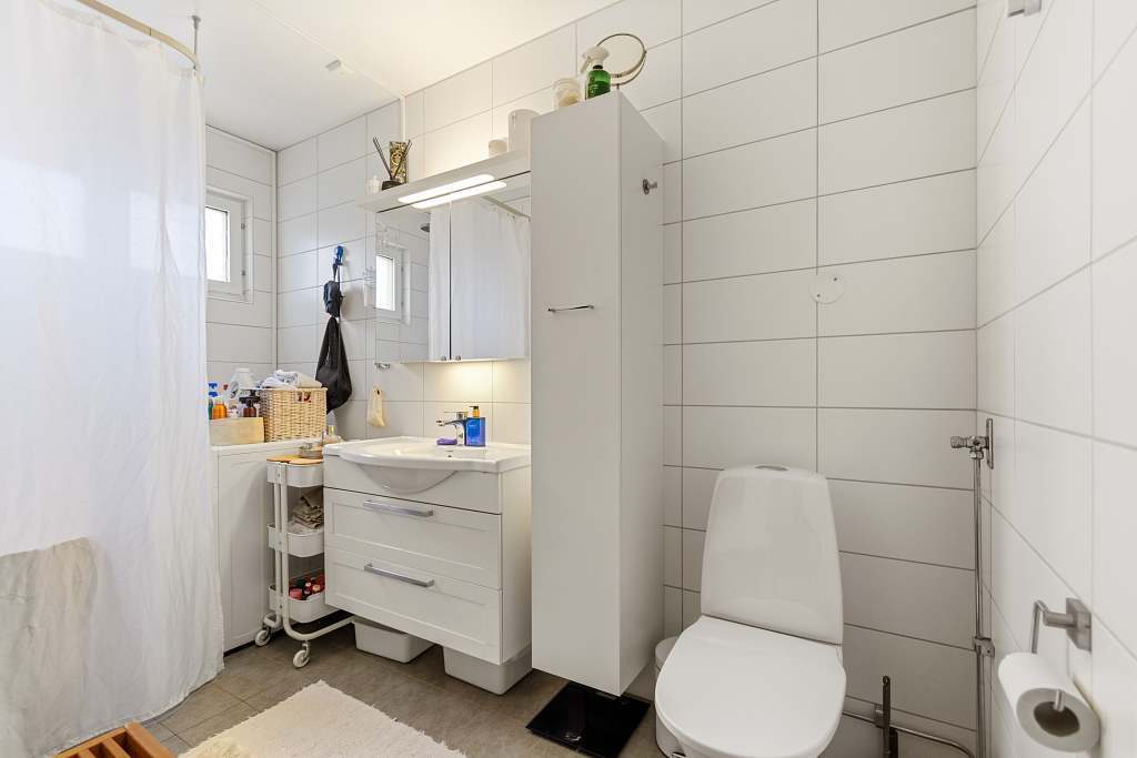 Trivsamt med dubbla toaletter och balkong på populära Mjölkudden