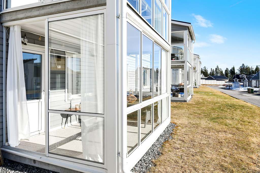 På gång! Säljaren letar hus och kan tänka sig bytesaffär. Kontakta oss med ditt objekt för mer info! På markplan och med egen ingång finner ni denna modernt planerade lägenhet med fina sociala ytor. Bostaden är nyproducerad mellan 2017-2019 och har öppen planlösning mellan kök och vardagsrum. Hallen inrymmer gott om förvaring via skjutdörrsgarderob. Mycket smakfullt kök med vit köksinredning. Ljust och luftigt vardagsrum med utgång till ett stort inglasat uterum. Härifrån når man gräsmattan och kan både grilla och sola mot husväggen. Utöver det finns två fina sovrum, varav det större med tillgång till egen klädkammare. Fint renoverat badrum med kakel och klinker med golvvärme. Badrummet är även praktiskt inrett med både tvättmaskin och torktumlare. Bostaden har genomgående ljusa och stilrena färgval med enhetliga parkettgolv, samt stora fönsterpartier som ger rikligt ljusflöde i hela lägenheten. Från altan HSB Brf Hällbacken består av 52 lägenheter fördelade på 7 st tvåvåningshus. I månadsavgiften ingår värme, kabel-TV, bredband samt bostadsrättstillägg. I föreningen finns de gemensam lokal med bastu och relax att tillgå samt övernattningsrum att hyra för gäster. Parkeringsplats via carport med förråd (medföljer förråd med lägenhet oavsett om man hyr carport eller ej) plats kostar 500kr/mån och föreningen har flertal parkeringsplatser och kan därmed erbjuda varje lägenhet att hyra en plats. Det finns även möjlighet att hyra parkering med motorvärmarstolpe för dig som har mer än en bil. Hällbacken är ett av Luleås nybyggda bostadsområden och som växer i stadig takt. Ca 6 km nor om stadskärnan ligger detta bostadsområde som bestar av övervägande villor men även kedjehus och bostadsrätter. I området finns trevliga lekparker med klätterställning, gungor och sandlåda. Här bor du i vacker och naturskön miljö med närhet till motionsspår, skoterled och badplats. Fina gäng- och cykelvägar samt lek- och grillplats vid närliggande Sinksundet. Varmt välkommen att anmäla dig till visning via vår hemsida!Läs mer