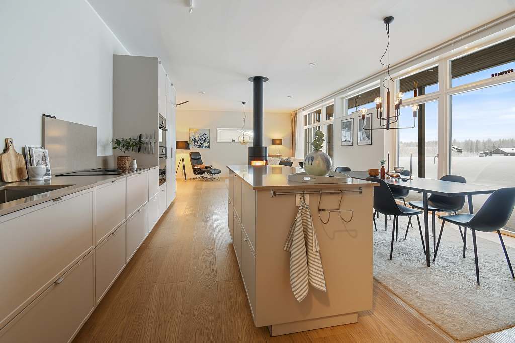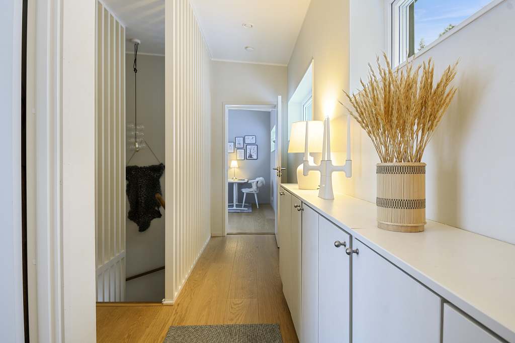 MÖJLIGHET TILL FÖRHANDSVISNING! Kontakta oss för mer info! Välkommen till Solskensvägen 9 på Sävastön. Här presenteras ett vackert och exklusivt hem, uppfört på vad som ursprungligen var två tomter. Resultatet är en generös och privat fastighet med genomtänkta materialval, luftiga rum och en inbjudande poolmiljö som sätter guldkant på vardagen. Huset byggdes 2020 och erbjuder cirka 210 kvadratmeter med ljusa, öppna ytor och en planlösning som är noggrant genomarbetad in i minsta detalj. De stora fönsterpartierna ger ett fantastiskt ljusinsläpp och skapar en naturlig kontakt mellan huset och den generösa tomten om cirka 2 000 kvadratmeter. På entréplanet möts du av en öppen och social planlösning där kök och vardagsrum smälter samman på ett naturligt sätt. Köket har både ett walk-in-skafferi, gott om arbetsytor och en köksö som blir en självklar samlingspunkt. Mellan köket och vardagsrummet finns en stämningsfull kamin som är vridbar och kan riktas antingen mot kök och matplats eller mot soffgruppen. På så sätt kan elden alltid avnjutas där man befinner sig. Entréplanet rymmer även ett sovrum med utgång till poolområdet, bastu och relaxavdelning, ett exklusivt badrum med dubbla tvättställ och ett stilrent modernt badkar, en praktisk tvättstuga samt en välkomnande hall. Övre plan erbjuder tre rymliga sovrum, samtliga med utgång till den stora balkongen i soligt läge. Master bedroom har en walk-in closet placerad diskret bakom sovrumsdelen. På detta plan finns även ett påkostat badrum med ett imponerande ljusinsläpp från ett stort fönster placerat högt upp, vilket ger både ljus och insynsskydd. Totalt finns fyra stora sovrum i huset, alla med härligt ljusinsläpp och direkt access till utemiljöerna via altan och balkongdörrar. Arkitekturen är stilren och tidlös med materialval som är utvalda för att hålla över tid. Huset är ritat av Nordmark & Nordmark Arkitekter och uppfört av Norrläge, något som tydligt märks i kvaliteten, detaljerna och helhetskänslan. Från huset nås altanen med pool, en plats som bjuder in till sommarens bad, lugna morgnar och långa kvällar i solen. Poolen är utrustad med ett elegant och praktiskt pooltak från Aluna Wave, vilket förlänger säsongen och ökar komforten. På tomten finns även ett rymligt dubbelgarage med förråd om cirka 75 kvadratmeter, byggt 2021. Här finns gott om plats för två bilar, förvaring och olika fritidsutrustningar. Bättre än så här blir det inte - kontakta oss för visning!Läs mer