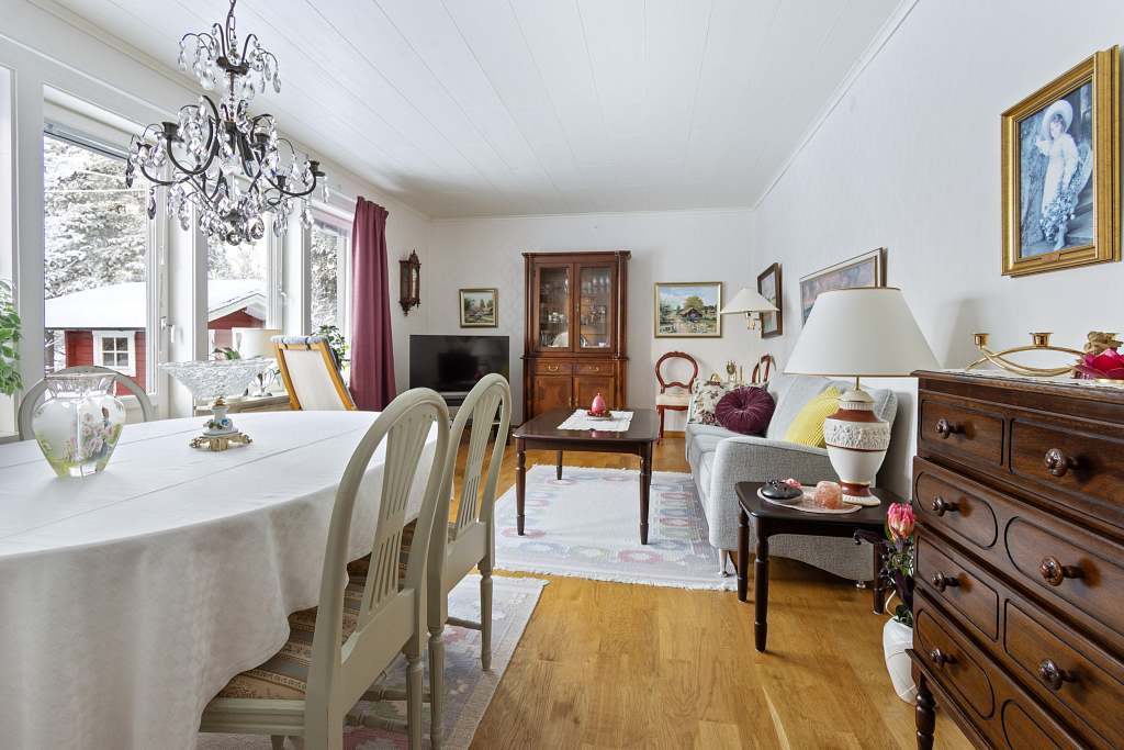 PÅ GÅNG! ANMÄL DITT INTRESSE REDAN IDAG SÅ KONTAKTAR VI DIG SÅ SNART VISNINGAR INLEDS. Fastigheten kommer att förhandsbesiktas av Anticimex. Stolt kan vi presentera en riktigt fin möjlighet för dig som söker villa i Övertorneå. På trivsamma och omåttligt populära Turovaara-området finner du denna hemtrevliga och välskötta enplansvillan på Häggvägen 6. Lösvirkeshus uppfört 1974 med vidbyggt varmgarage. Huset mäter upp yteffektiva 96 + 66 kvadratmeter och inrymmer totalt fyra rum och kök varav tre sovrum. Här finner du en trivsam planlösning med otroligt välskötta ytskikt i samtliga rum. Här finns en praktisk hall, tre sovrum i bra storlek, stort vardagsrum, renoverat IKEA kök, badrum, gästtoalett samt tvättstuga med dusch och bastu samt goda förvaringsmöjligheter i förrådsutrymme bakom garaget. Interiört har man verkligen tagit hand om huset och vårdat det på ett utomordentligt sätt. Här är det bara flytta in och njuta från dag ett. Tomten mäter 1 154 kvadratmeter och under snön gömmer det sig en fin gräsmatta samt buskar och träd som omfamnar fastigheten på ett fint sätt. Letar ni ett välskött enplanshus i ett populärt område? - Då blir det knappast bättre än detta. Varmt välkommen att anmäla ert intresse!Läs mer