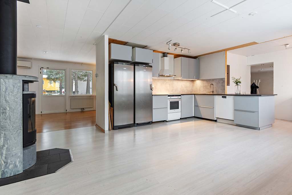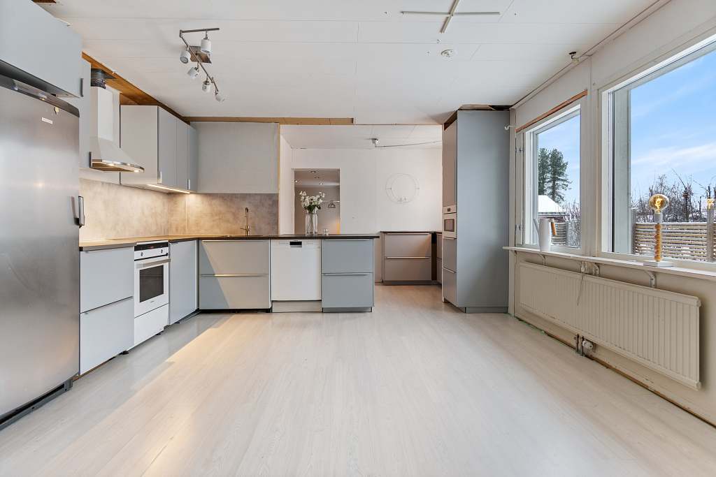 Fastigheten är förhandsbesiktad av Anticimex! Varmt välkommen till Movägen 9 och denna charmiga enplansvilla med genomtänkt planlösning, stora sociala ytor och gott om plats, även för den större familjen. Husets hjärta hittar du i köket som både är funktionellt och bjuder in till umgänge. Här finns bra arbetsytor och plats för familjens middagar. Intill köket hittar du den mysiga braskaminen som ger en extra mysfaktor under kalla vinterdagar. Dem tre sovrummen är av bra storlek och badrummet är renoverat och ger ett fräscht intryck. Här finns även en separat relaxavdelning med bastu och dusch. Tomten är välplanerad, solig och barnvänlig - perfekt för lek, trädgårdsprojekt eller bara lugna stunder i solen på någon av dem fina altanerna. Här finns även ett stort och rejält varmgarage med gott om plats för både bil och hobbyverksamhet. Husets värms upp via fjärrvärme och fiber finns indraget. Här bor du snart i ett lugnt och trivsamt område med närhet till det mesta som centrala Pajala erbjuder. Missa inte din chans, varmt välkommen på visning!Läs mer