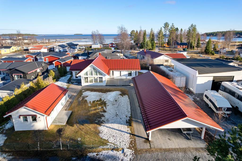 Välkommen till ett stilrent och genomtänkt hem där varje del av fastigheten bidrar till en bekväm och harmonisk vardag. Här bor du i en välplanerad villa byggd 2017 med fina sociala ytor, tre rymliga sovrum och flera uppskattade komplementbyggnader som skapar möjligheter för både familjeliv och fritid. Hela bostaden präglas av genomtänkta materialval och hög kvalitet. Villan erbjuder högsta komfort med golvvärme i hela huset, motordriven solavskärmning, centraldammsugare samt bergvärme med frikyla som håller inomhusklimatet behagligt året runt. På bara några minuters promenad når du havet, badplatsen, din egen båtplats och Pite Havsbad. Ett hem som passar lika bra som fritidshus som permanentboende. Du välkomnas in i en inbjudande hall med plats för avhängning och förvaring. Redan här märks bostadens omsorgsfulla materialval som sätter tonen för resten av hemmet. Vidare öppnar hemmet upp sig mot kök och vardagsrum i en social och luftig planlösning där takhöjden verkligen imponerar. Här sträcker sig taket upp i nock och skapar en fantastisk rymd som tillsammans med stora fönsterpartier ger ett generöst ljusinsläpp. Kombinationen av den öppna planlösningen, den generösa takhöjden och de genomgående kvalitativa materialvalen ger en exklusiv och varm atmosfär. Det stilrena köket är smakfullt utformat med goda arbetsytor, gott om förvaring och en central köksö som blir hemmets naturliga samlingspunkt. Vardagsrumsdelen erbjuder gott om plats för soffgrupp och den vackra kaminen blir rummets naturliga mittpunkt där lågornas sken skapar en varm, ombonad och inbjudande atmosfär under årets kallare månader. I bostaden finns tre sovrum i bra storlek. Master bedroom är i en privat del av hemmet och har dessutom ett eget badrum samt klädkammare, en bekväm och uppskattad detalj som skapar hotellkänsla i vardagen. De andra två sovrummen är i bra storlek och passar utmärkt som barnrum, gästrum eller hemmakontor. Utöver det privata badrummet finns ytterligare ett stilrent badrum, även det med smakfulla och hållbara materialval. Den separata tvättstugan är praktiskt utformad med bra arbetsytor och förvaring som underlättar vardagen. På tomten finns en mysig gäststuga med eget litet kök och badrum, vilket skapar fina möjligheter för gäster eller uthyrning. Intill finns även ett förråd med egen ingång för smidig förvaring. Det fristående dubbelgaraget är utrustat med klinkergolv med golvvärme och elektriska portar, vilket ger både komfort och ett påkostat intryck. Här finns gott om plats för två bilar samt extra utrymme för förvaring. Utanför garaget finns även en rymlig carport med en praktisk stenbelagd infart. I samma byggnad med egen ingång finns en inbjudande bastu med relax, en plats för avkoppling och vardagslyx. Detta är ett hem som verkligen måste upplevas på plats. Varmt välkomna att boka in er på visning!Läs mer